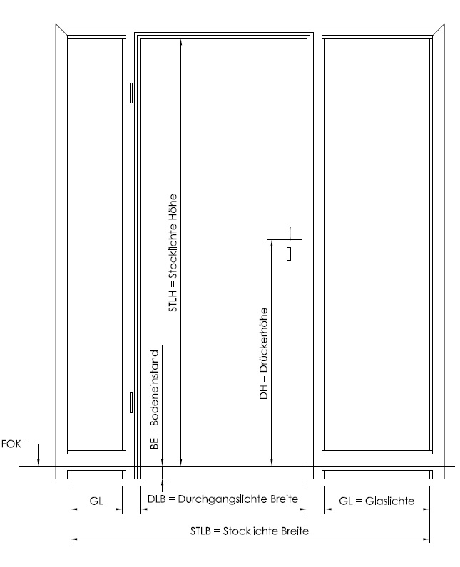 Anmerkung: die Brandschutzkennzeichnung, sowie die hierfür technische Ausführung, ist immer vom Türblattlieferanten abhängig und zu erbringen!