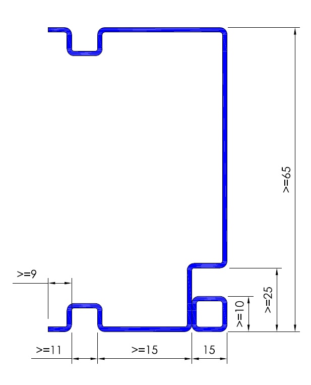 Material aus Stahlblech verzinkt, Nennblechdicke 1,5 mm oder 2 mm.